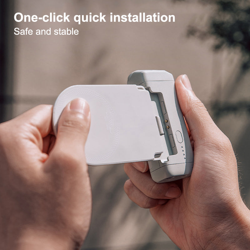 [Build in Powerbank with Wireless Charging]: Built-in 3000mAh 18650 battery and coil, support MagSafe magnetic wireless charging, 18N vertical pull force prevents movement. Grip module can becomes a compact 10W power bank anywhere