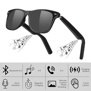 Superior Sound Quality: Our Smart Bluetooth Sunglasses feature a built-in high-fidelity small speaker, delivering crystal clear audio for an immersive listening experience. Whether you’re enjoying your favorite tunes or making calls, you’ll appreciate the exceptional sound quality.